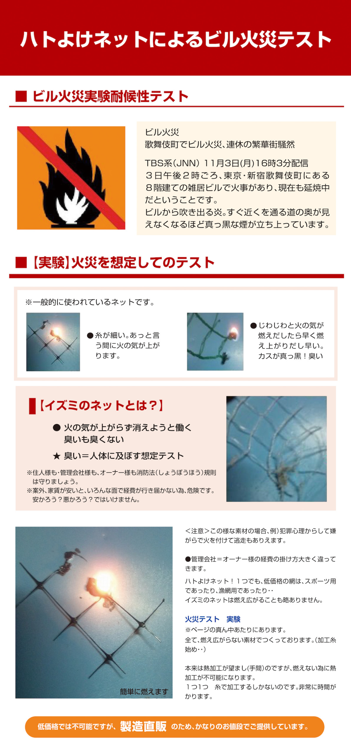網の火災テスト